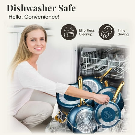 Gotham Steel 12 Piece Pots and Pans Nonstick Set Ceramic Cookware Kitchen Set, With Frying Skillet, Saucepan | Navy Cream