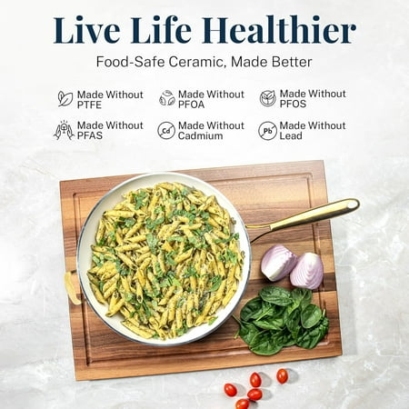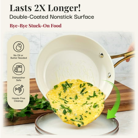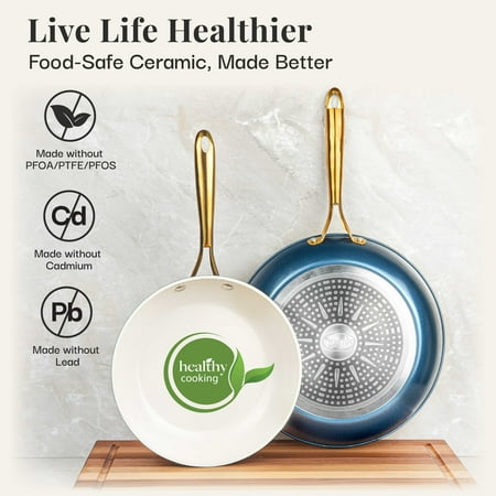 Enhance your culinary collection with the Gotham Steel Nonstick Ceramic Pots and Pans 12 Piece Kitchen Cookware Set, expertly designed in a refined Navy Cream finish. This heavy-duty set features a robust construction and a double-coated nonstick ceramic surface, delivering superior durability and excellent food release. Engineered for healthier cooking, these pans require minimal oil or butter, making them perfect for health-conscious chefs. With ergonomically designed stay-cool handles and the capability to withstand oven temperatures up to 500?F, this versatile cookware transitions seamlessly from stovetop to oven. Ideal for everything from daily meals to special occasions, this set combines elegance with practicality, making it a splendid addition to any kitchen.