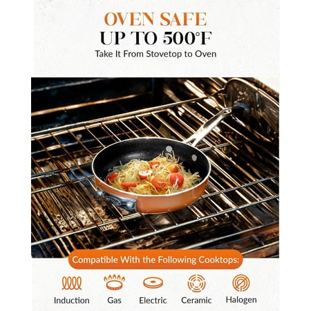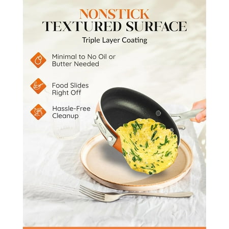 Transform your kitchen with the Gotham Steel 10-Piece Stackable Cookware Set, featuring a stunning copper finish that not only looks luxurious but also adds a touch of elegance to your cooking space. This advanced set is designed for maximum functionality without sacrificing style. The unique stackable design allows you to store the entire set in two stacks, utilizing 30% less space, and making it ideal for small kitchens. Each piece is equipped with our premium nonstick surface, triple-coated with a cast-texture ceramic and titanium blend, ensuring effortless food release and cleanup. Durable and versatile, these pots and pans are compatible with all cooktops and oven-safe up to 550?F. With three interchangeable tempered glass lids, this set is a perfect blend of style, efficiency, and convenience, designed to cater to all your cooking needs.