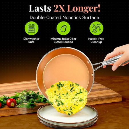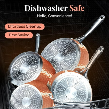 The Gotham Steel Hammered Pots and Pans Set is a 15-piece nonstick ceramic cookware set that combines elegance with functionality. This ultra-durable set features a triple-coated nonstick surface for easy food release and quick cleanup. With over 30 million happy customers, Gotham Steel has revolutionized kitchens across the world with the introduction of nonstick ceramic copper cookware! This set has been improved in every area including the nonstick coating, stay cool handles, exterior finish, and durability, including adding diamonds to the surface to ensure the pan doesn?t scratch! Dishwasher safe and made without added toxins, this set is perfect for healthy cooking. Suitable for all stovetops and ovens up to 500?F, it includes all the essentials: frying pans, saucepans, stockpots, and utensils. Enhance your kitchen with this stylish and efficient cookware set.