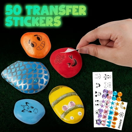 Unleash your child's creativity with the Joyfy Rock Painting Kit. This comprehensive set includes 12 rocks, 6 standard paints, 6 metallic paints, 5 glow-in-the-dark paints, 4 glitter glue, 32 gems, 50 stickers, 4 brushes, and 2 sponges, allowing kids to design and personalize their own unique rock creations. Encourage a love for nature and inspire their imagination as they transform ordinary rocks into vibrant, one-of-a-kind masterpieces. This arts and crafts kit is perfect for children ages 4 to 12, meeting US toy safety standards for a safe and enjoyable experience.
