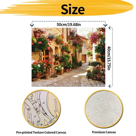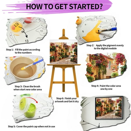 ENJOY DIY PAINT BY NUMBER KITS It is the perfect first step for adults or beginners to enjoy the painting artwork. Simply apply the numbered colors in the blanks with the same number on canvas to create your own masterpiece. The paint by number kits will be your own masterpiece for collection. This superb painting by numbers kit can even be framed to make a fantastic oil painting work for your wall. SPECIFICATIONSUnfold Size: 40x50cm/16x20in Frame: NOT Including HOW TO STEP BY STEP FINISH PAINT BY NUMBER ADULTS KITS1. Open the box and check the Painting By Numbers tool. 2. Check the color of the paint, and the order of the numbers arranged on the oil painting. 3. Uncover the canvas, you will see a lot of symbols corresponding to the color numbers. 4. Filled in the areas that are marked with numbers with the corresponding paint. (For convenient to DIY, please add a small amount of water to the paint) 5. It is recommended to Paint one group color at a time, which can be completed faster. 6. In order to create a perfect Painting By Numbers, it is recommended to put the drawings together when painting and paint all the color areas. 7. After painting, make a slight modification on the connection between color blocks with the corresponding color. 8. When you finish, place it in an appropriate frame for you prefer. (This product is NOT Including Frame). SUGGESTIONS: If you fill in the wrong color, you can wait for the paint to dry up and then cover the wrong part with the correct color on the surface. Or wipe with a small amount of water, after drying, and then apply the correct color. Please cover the lid of the paint well when you do not use it, in case the paint dries up. If you happen to have the paint on your clothing, please wash it immediately. ?1 Set X Acrylic Paint by Numbers Kits 1 X Canvas(No Frame) 3 X Painting Pens 2 X Hooks