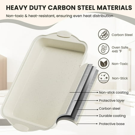 Kikcoin has always been committed to creating safe, non-toxic, and durable kitchenware. This 22-piece non-stick bakeware set is made of high-quality carbon steel to ensure even heating, easy cleaning, and long-lasting durability. This baking pan set includes 2 round pans, a loaf pan, a baking pan, a roaster pan, a pizza pan, 2 cookie sheets, 2 multi-cup muffin pans, and 12 silicone cups, perfect for home baking.
