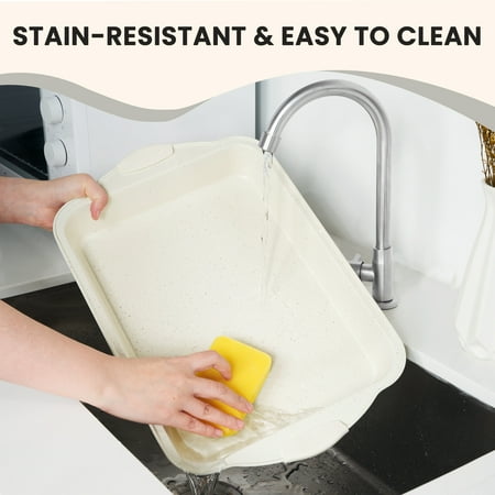 Kikcoin Bakeware Set, 22-Piece Baking Pans Set Kitchen Carbon Steel Baking Sheet Pans with Silicone Handles, Cookie Sheets Nonstick(Beige), Beige