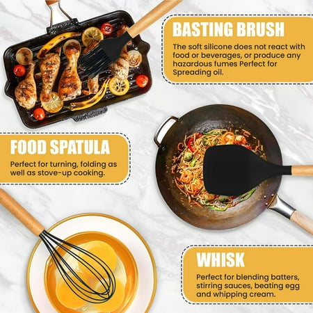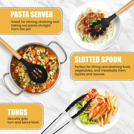 Kitchen Utensils Set- 19 Pcs Silicone Cooking Utensils Set for Nonstick Cookware-Silicone Spatulas Set, Kitchen Gadgets Tools, Pots and Pans Accessories-(Black 19 PCS Set)
