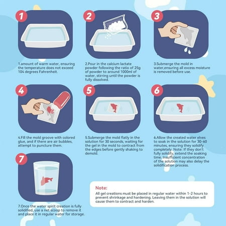 Magic Water Elf Toy Kit Aqua Fairy Water Gel Kit with Magic Gels, 12 Sea Creature Molds. Christmas Gifts, Birthday Gifts, Arts & Crafts DIY STEM Kits for Kids The product includes: Let the kids create their own toy paradise! This is a homemade DIY toy set where kids can create special creatures in the water! This can help kids their by decorating toys with various colors and shapes. Parents should participate in the whole process together! This is a great opportunity to build a closer relationship with your kids! Let's and have fun! Safe for kids - Made , non-flammable materials, safe for children to use. Great for learning - Improve children's hands-on ability and hand-brain ability. Stimulate children's. And train children to recognize colors and shapes. Easy to use - Just pour glue on the mold and wait for it to harden, you can start! Environmentally friendly - The set is made of environmentally friendly materials and tested by authorized laboratories. Perfect gift idea - These DIY water elves are a great choice for birthdays, Christmas and party gifts Step 1: 1 kg of water, add 20 grams of companion and stir until the water is clear. Step 2: Soak the mold in the water of the soak the color paste in it. Step 3: Slowly put in the filled template and until the water spirit is separated from the template. Step 4: Soak in water for 5-10 minutes, soak in clean water for a few hours, it will become fuller! Product description: 1xtoy set