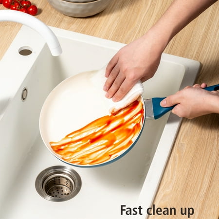 Mainstays 12 Piece Ceramic Nonstick Aluminum Pots and Pans Cookware Set, Blue, Blue