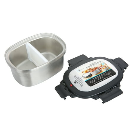 Maintain perfect meal temperatures with the versatile Mainstays 33 oz Food Container. Crafted from durable, food-safe stainless steel, this innovative lunch box features a secure lid and double-wall insulation to preserve your food's ideal warmth or coolness for hours. The clever removable divider allows you to pack multiple dishes without mixing flavors. The non-porous stainless steel construction ensures no lingering odors or taste transfer between uses. Built to withstand daily use, the Mainstays Food Container simplifies meal prep and encourages healthier eating habits. Elevate your lunch game with this practical, stylish, and eco-friendly food storage solution