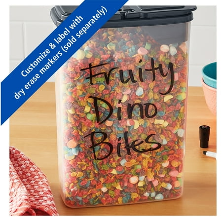 The Mainstays Storage Dispenser for Cereal, Snacks and More offers a slim, rectangular design to maximize your pantry?s space, neatness and cleanliness. The 4 quart / 16 cup size fits easily in the hand and is a perfect size match for the most common dry cereal and snack bags. The cereal dispenser features a unique ?bag-In? storage option. Benefits include being able to read the variety and brand information on the bags, and, as a bonus, the inside of the container stays clean! To utilize this feature, simply place the bag inside the container and scissor off the top roughly level with the dispenser?s height. Replace the flip top lid so you can pour fresh from the original packaging! Also useful for organizing bird seed, pet foods and treats, kibbles, chews and more. This product is manufactured from high quality BPA-Free plastic and is top rack dishwasher safe.