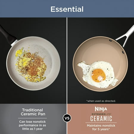 Meet the Ninja Extended Life? Essential Ceramic cookware, CW89012 that lasts for years. Our CeramicLock? coating provides 5 years of nonstick performance while traditional ceramic pans can wear out in as little as 1 year. Extended Life? Ceramic requires little to no oil or fat, making healthy cooking easier without compromising performance. The unique durable design is oven safe to 550?F, easily wipes clean and is dishwasher safe. Enjoy peace of mind when using CeramicLock? coating made without harmful chemicals to align with your lifestyle.