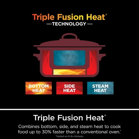 Meet the Ninja Foodi Possible Cooker 8.5 qt., MC1000WM, the versatile 6-in-1 cooker that makes anything possible. This go-to cooker can replace 10 cooking tools and appliances, offering cooker to oven to table functionality. Cook up to 30% faster than a conventional oven* with Triple Fusion Heat, which combines bottom, side, and steam heating elements to unlock even more cooking options. *Tested on 6-lb chickens.