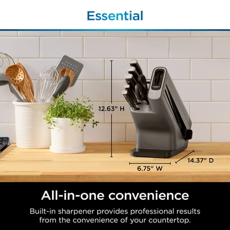 Introducing the Ninja NeverDull Essential Prep Knife System, the essential prep knives that stay razor-sharp for over 10 years. Experience the durability and precision of the Ninja? NeverDull? Knife Set. Featuring high carbon stainless steel blades, these knives are both durable and rust-resistant, ensuring long-lasting sharpness. The built-in NeverDull? Technology in the storage block makes sharpening easy and foolproof, maintaining razor-sharp edges for effortless food prep. Ergonomically designed handles offer a comfortable and balanced grip, while the wear-resistant, triple-rivet construction ensures reliable durability.Hand washing is recommended.