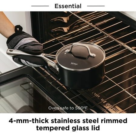 Ninja? Neverstick? 14-Piece Cookware Set is the cookware that won't stick, chip, or flake. Super-heated at 30,000?F, plasma ceramic particles are fused to the surface of the pan, creating a super-hard, textured surface that interlocks with our exclusive coating for a superior bond. Neverstick? technology enables perfect food release during every use, and won?t rapidly lose nonstick like some traditional pans made at 900?F can. Glass lids, handles and nonstick coating are all oven safe up to 500?F, so you can easily go from stovetop to oven to finish cooking meats, brown toppings, or bake like in cast iron. Our exclusive coating is metal-utensil safe, easy to wipe clean and dishwasher safe. Fully backed by the Ninja 10 Year Guarantee. *Use as directed.