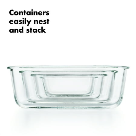 OXO Softworks Smart Seal Glass Containers do more than just keep food fresh. Made from naturally BPA-free borosilicate glass, these durable containers are built to go from freezer to pre-heated oven?or microwave?without the need to fully thaw. Four locking tabs work together with the silicone gasket to create a leakproof seal, perfect for taking food on the go. Smart Seal Containers stack conveniently in your fridge or freezer and nest neatly in your cabinet. Dishwasher safe.
