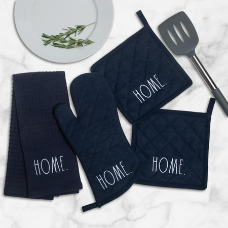 Rae Dunn Kitchen Towel, Oven Mitt & Potholder Kitchen Set 4-Pack, Navy Blue