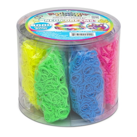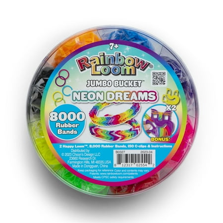 This bucket is packed full! With the Rainbow Loom Jumbo Bucket the project possibilities are endless, from bracelets, necklaces, key chains and more. Kids can let their imagination and creativity run wild. Includes 8,000 Neon Colored Latex Free Rubber Bands, 2 Happy Looms, 150 C-Clips and Easy to follow instruction sheet. With all these materials, children can create a wide variety of colorful and fun accessories using the popular Rainbow Loom crafting technique. It's a great gift for kids who enjoy arts and crafts and provides hours of creative entertainment.