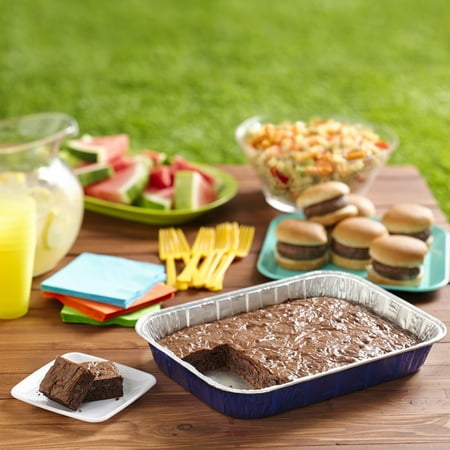 Reynolds Foil Dessert Pans with Lids make baking your cakes, brownies and other pastry treats fuss-free and easy to share with others. Each 13 x 9 aluminum cake pan has a nonstick surface that eliminates the need for oil or spray. Just pour the batter in, and slide your cake right out of the pan after cooling. A snug fitting, clear lid is included for each pan and makes transportation and storing leftovers easy. Plus, when the party?s over, cleanup is simple with these recyclable, disposable pans. Whether you're baking a birthday cake for family or whipping up a cobbler for a party, these aluminum baking pans make fast work of the dishes so you can enjoy the festivities.