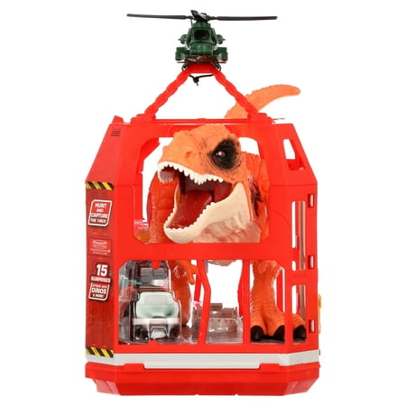 Beware there?s a Dino on the loose! Fuelled with Jurassic rage and on a path of destruction, you?ll need to use your traps, weapons, and wits to capture the Dino before it?s too late! Move the Dino?s tail and listen to the prehistoric world roar to life with lifelike lights and sounds. Can you capture the Dino and prevent a Dino escape!