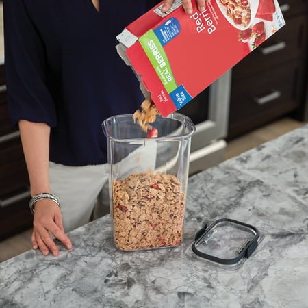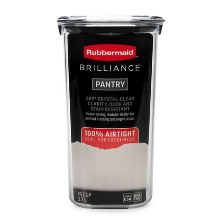 Keep pantry food items fresh with the Rubbermaid Brilliance Pantry Airtight Food Storage Container. Guaranteed not to leak, this intelligently crafted and beautifully designed BPA-free plastic container is built with an airtight leak-proof seal and secure latches. Crystal-clear lids and bases make it easy to see what?s inside and are stain- and odor-resistant, which helps them stay looking like-new. These food storage containers feature a modular design to save space in your cabinet or pantry. The 16 Cup container is perfect for storing large amounts of flour for all your baking and cooking needs.