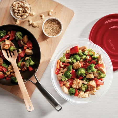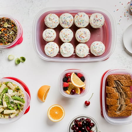 Store, organize and pack a variety of foods with these Rubbermaid Take Along Containers. Ideal for meal prep, lunch, snacks, leftovers and more, they have updated, more durable bright-red lids, while the ridged design makes stacking easy. This Rubbermaid 40 piece storage set is also BPA-free, freezer and top-rack dishwasher safe and the bases are microwave safe for reheating, making them a wonderful choice for taking to work, school, the office, on picnics and to just store food in your fridge or freezer as well. The thick walls make them ideal for everyday use and when you stack them they take up less space in your cabinets. Rubbermaid Take Along Containers keep your food fresh and prevent leaks and are ready to reheat and store your favorite foods.