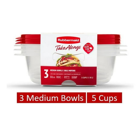 Rubbermaid TakeAlongs, 5 Cup, Set of 3, Red, Medium Bowls Plastic Food Storage Containers