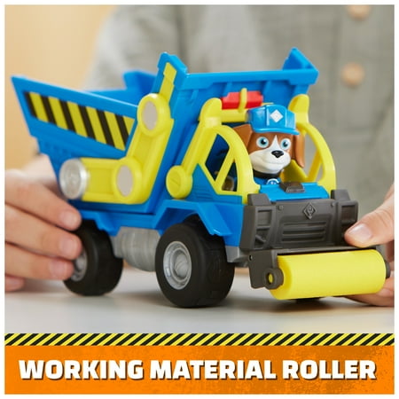 Wheeler is ready to build, in his all-new Rubble & Crew Dump Truck toy construction vehicle! Featuring real working wheels, a movable roller and a working dump truck bed, this toy truck is a must-have for fans of the PAW Patrol series that love the building and construction aspect of the show! Kids will love teaming up with their parents to play with their favorite pup, use their imaginations to recreate their favorite building projects from the show, and then develop construction adventures and ideas of their own! For even more exciting pretend play missions with construction toys, look for all the Rubble & Crew Construction Truck Toys, plush toys and play figure sets with Kinetic Build-It sand (each sold separately)! Enjoy non-stop building adventures with all your favorite pups! Rubble & Crew construction and sensory toys are made to give kids and parents an opportunity to build, play and learn together! These toy figures and playsets make fantastic gifts for kids that love building toys, and who are still developing their fine motor skills and imaginations! Bring the excitement of the Rubble & Crew series to life with Wheeler?s Dump Truck!