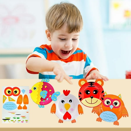 SAYLITA 10Pcs Toddler Crafts Paper Plate Art Kit Arts and Crafts for Kids Boys Girls Preschool Easy Animal Plate Craft DIY Projects Supply Kit Creative Home Activity Craft Party Groups Gift