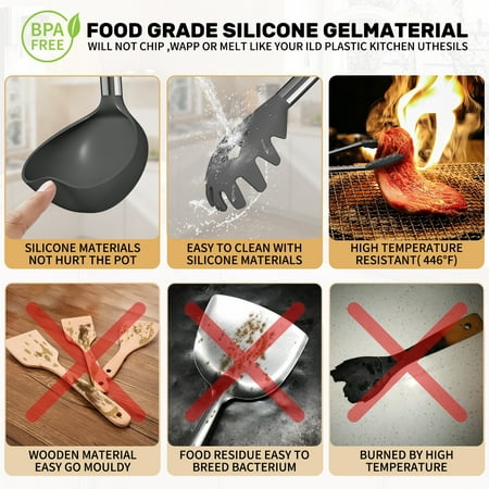 Silicone Cooking Utensil Set, 30 Pcs Kitchen Utensils Cooking Utensils Set, Food Grade Silicone Spatula Set, Non-stick Heat Resistant Silicone Cookware with Strong Stainless Steel Handle, Gray, Gray
