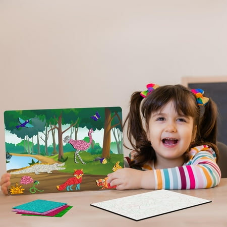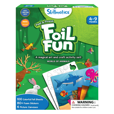 Foil Fun World of Animals by Skillmatics is a magical, mess-free activity designed to inspire hours of sparkly fun. Foil Fun encourages creativity and strengthens fine-motor skills through play. Imagination will soar as children create unique foil pictures featuring animals from the sea, jungle, forest, and more! Select a picture canvas, choose stickers and apply color using sparkly foil sheets. Add as many colorful stickers as needed to bring the canvases to life. For Unisex Child Ages 4-9. Product Weight 1.19 lbs.