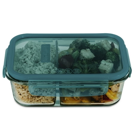 This medium-size, divided storage is designed especially for meal prep, to help you organize meals at home or on the go. The plastic lids have 4 locking tabs for an airtight, leakproof seal to keep food fresh. With 2 compartments, you can keep foods separate, perfectly portioned and ready to eat. And the Pyrex? glass stands up to the microwave and dishwasher use after use.