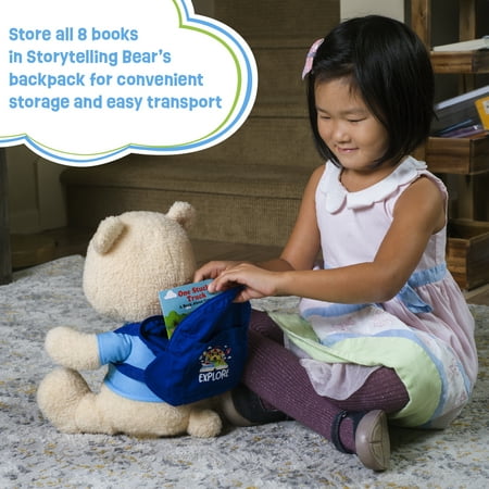 Grab your backpacks, the Spark Create Imagine Storytelling Bear is taking you on a learning adventure! It is an adorable, cuddly friend that will spark your child's imagination and foster creativity and learning! The bear features cute little cheeks light up in different colors as he reads you eight different books. He carries a backpack that can be used as storage to insert the colorfully illustrated books. His animation and educational features are sure to keep your little one engaged. Learn the alphabet, count numbers, sing a song together, and watch the pretty lights illuminate your child's bedroom. It is the perfect companion for your little one.