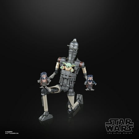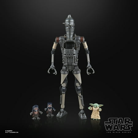 Star Wars The Black Series includes 6 inch action figures, vehicles, and roleplay items from the 40-plus-year legacy of the Star Wars galaxy, letting fans create galactic scenes with a faithfulness to Star Wars comic books, movies, and series. This Star Wars action figure 2-pack is detailed to look like IG-12 & Grogu from Star Wars: The Mandalorian. With exquisite features and decoration, The Black Series embodies the quality and realism that Star Wars devotees love. May the Force be with you! (Additional products each sold separately. Subject to availability.) Star Wars products are produced by Hasbro under license from Lucasfilm Ltd. HASBRO and all related trademarks and logos are trademarks of Hasbro, Inc.