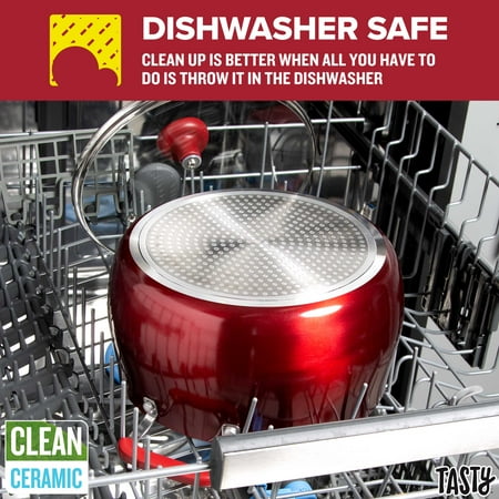 Tasty Clean Ceramic 24 Piece Non-Stick Aluminum Cookware Set, Red