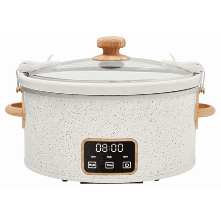 The Pioneer Woman 6 Qt Digital Slow Cooker with Locking Lid, Linen Speckle, Off-White