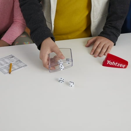 YAHTZEE Classic Board Game for Kids and Family with Shaker and Dice Ages 8 and Up, 2+ Players It?s the classic dice-rolling challenge of YAHTZEE, and you'll shake, score and shout! Can you roll the right combinations to beat the competition? With each round, decide which dice to keep on your first, second and third rolls, then roll again or play it as it lays. Try for a full house or gamble everything on a YAHTZEE ? five of a kind! Whoever has the high score after 13 rounds is the ultimate winner. You and your friends will want to play again and again, so roll it to the limit for the YAHTZEE win!